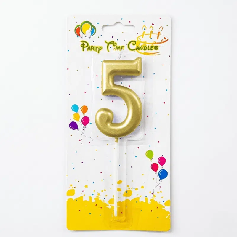 5 Golden Number Candle is a beautiful cake accessory with a shiny golden finish, perfect for birthdays and celebrations at just 1 OMR.