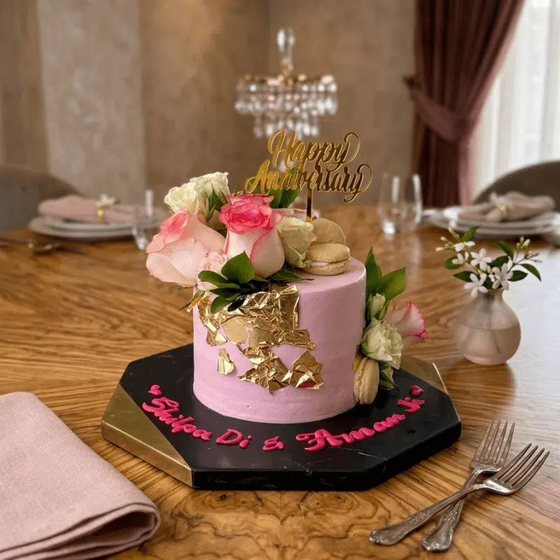 Anniversary Pink Flower Cake is elegantly designed with soft cream layers and floral detailing, making it a perfect cake for romantic milestones.