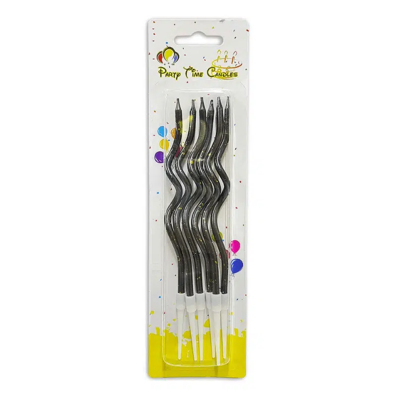 Spiral Black Candles offer a bold and modern look for cakes, perfect for stylish birthdays and elegant parties.